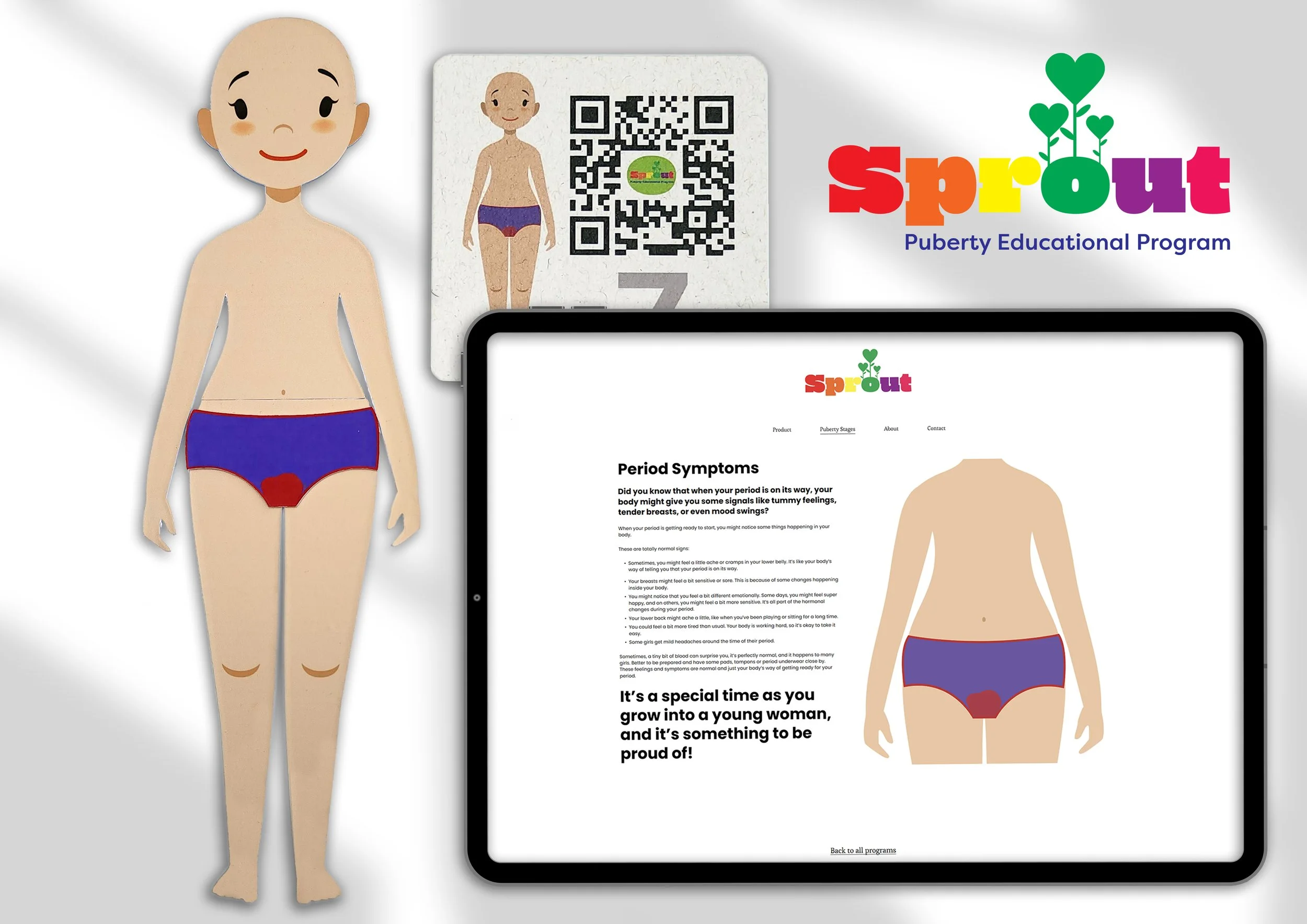 'Sprout' was born from my deep concern for the challenges parents face when discussing puberty with young girls aged 8-10. As a passionate advocate for informative and eco-conscious education, I embarked on this project to create a toolkit that bridges the communication gap, combining engaging illustrations, QR code interactivity, and sustainable materials. 'Sprout' strives to empower young girls and their caregivers as they navigate the complex journey of puberty.